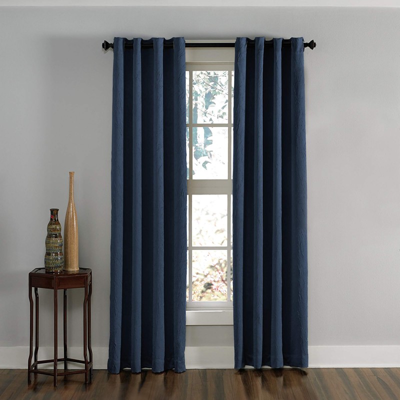 Add timeless style to your decor with this lovely transitional window panel! grommet top tailored window panel features a solid, subtle crushed textured room-darkening polyester fabric. Panel is accented with 1.5-Inch metal grommets to accommodate either a standard or decorative drapery rod; to hang, simply slide the rod through the grommets. Single, wide-width panel measures a generous 50 inches wide. Panel is sold individually; use multiple panels to cover wider windows or add fullness.