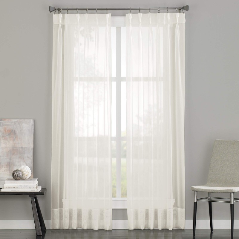 - STYLING OPTIONS Single panel is 29 inches wide; Pinch pleat construction with 4-inch Hidden back tabs; Hang pinch pleat sheer curtains in your home office, family room, living room, dining room or bedroom; Unlined.