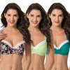 Curve Muse Women's Plus Size Underwire Unlined Balconette Cotton Bra, Pack of 3 - Dark Green, Lemon, Black Print (Pack of 3) plain, size: 105F