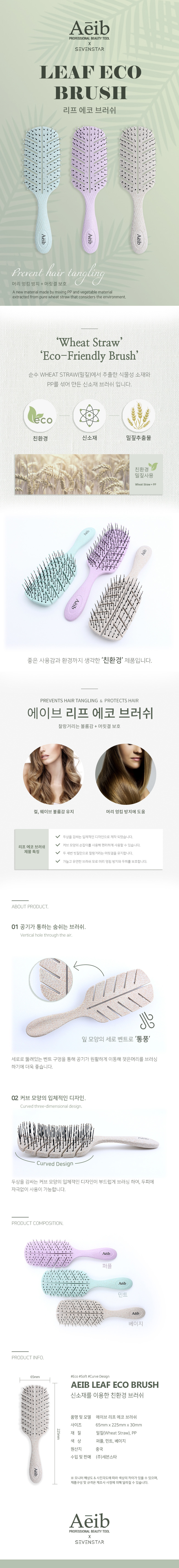 커브 잎모양 에코브 러쉬 1P 엉킴 방지 볼륨 유지 헤어빗 - 베이지