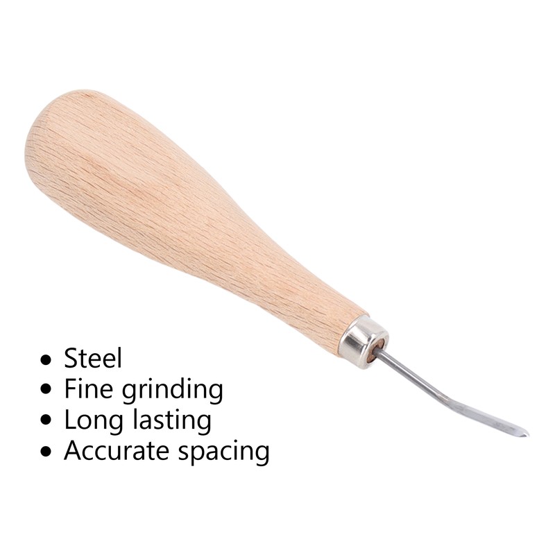 Curved Stitching Awl Accurate Spacing Steel Awl Tool Sewing Professional Ergonomic Awl Punch with Beech Handle for Punching