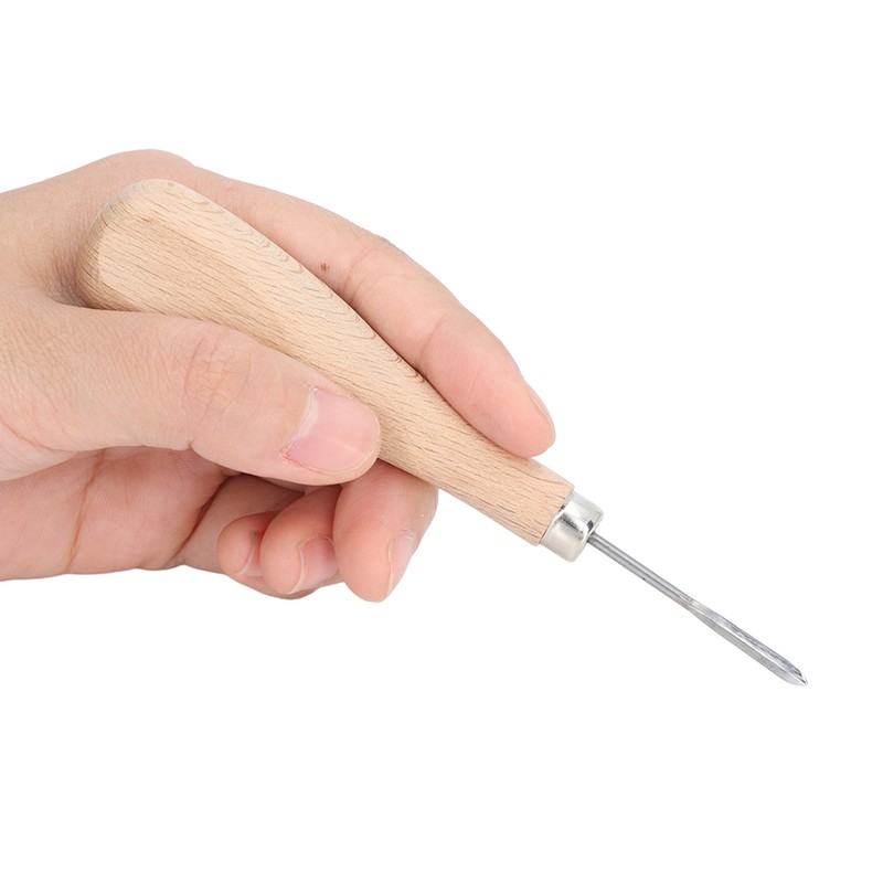 1、High Hardness: The cone is made of steel, and the whole is acute abrasive, with high hardness, strong and durable, and can be used for a long time. 2、Beech Wood Handle: Awl punch adopts beech wood handle, which is ergonomically designed, the appearance is glossy without burrs, and the grip is comfortable. 3、Professional Design: Awl tool Ssewing is professionally designed, professional leather craft DIY tool, perfect for punching holes in leather sewing 4、Fine Ginding: Leather stitching awl has a acute edge, the edge is finely ground, flat, precise spacing, acute punching, long service life. 5、Fine Workmanship: The Curved Stitching Awl is finely crafted, lightweight and portable for completing 3mm extended stone chisel projects.