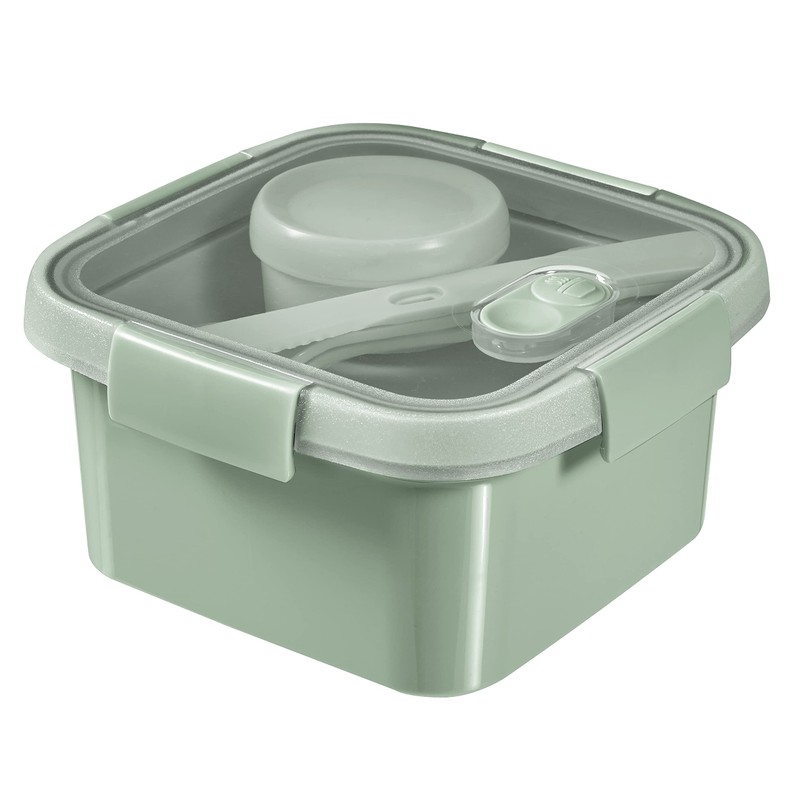 Curver 249947 Smart Eco Line Recirculated Storage Box 1.1 L Square with Cutlery, Plastic, Green