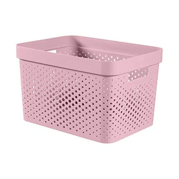 CURVER Infinity 17L Recycled Multipurpose Storage Basket, Stackable and Interlockable, 35.5 x 26.2 x 21.9 cm, Pink