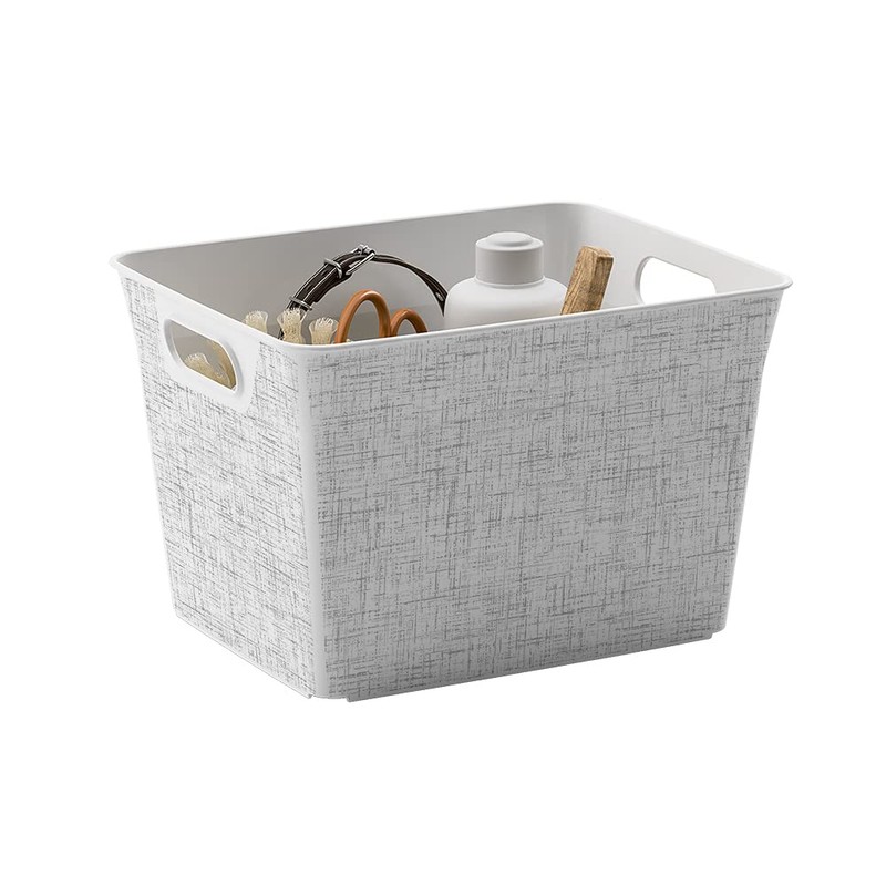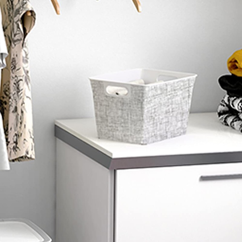 Curver Set of 6 Medium V Basket Decorative Plastic Organization and Storage Basket, White with Tweed Pattern