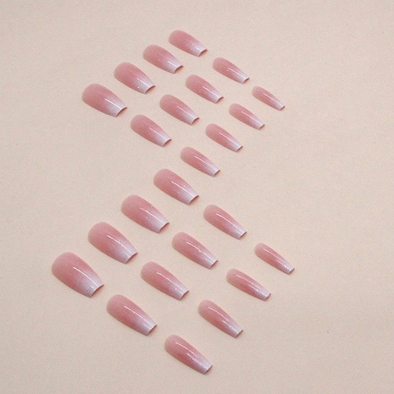 CurvLife Curvlife Bling Coffin Press on Nails Short Square Acrylic Fake Nails with Apricot Design Full Cover False Nails Glossy Gradient Artificial Stick on Nails for Women 24Pcs (Gradient Nude White)
