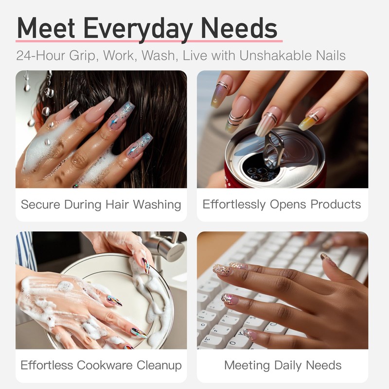 - Long-Lasting and Worry-Free Daily Wear:Durable Press on Nails with protective Gel Finish withstand daily tasks (typing, chores). Enjoy a chip-resistant, long-lasting manicure without frequent touch-ups