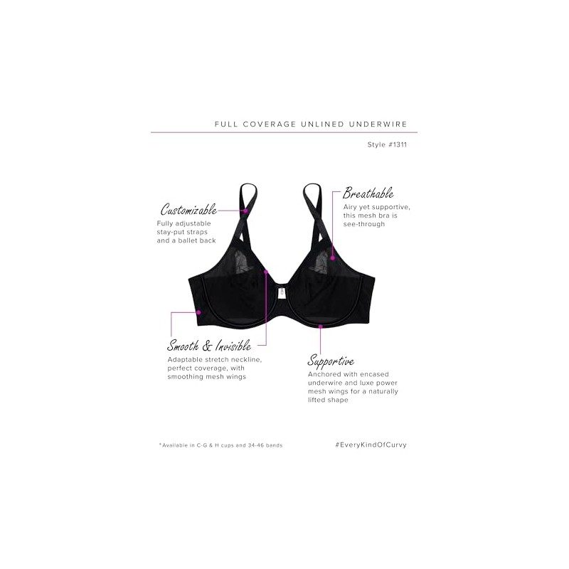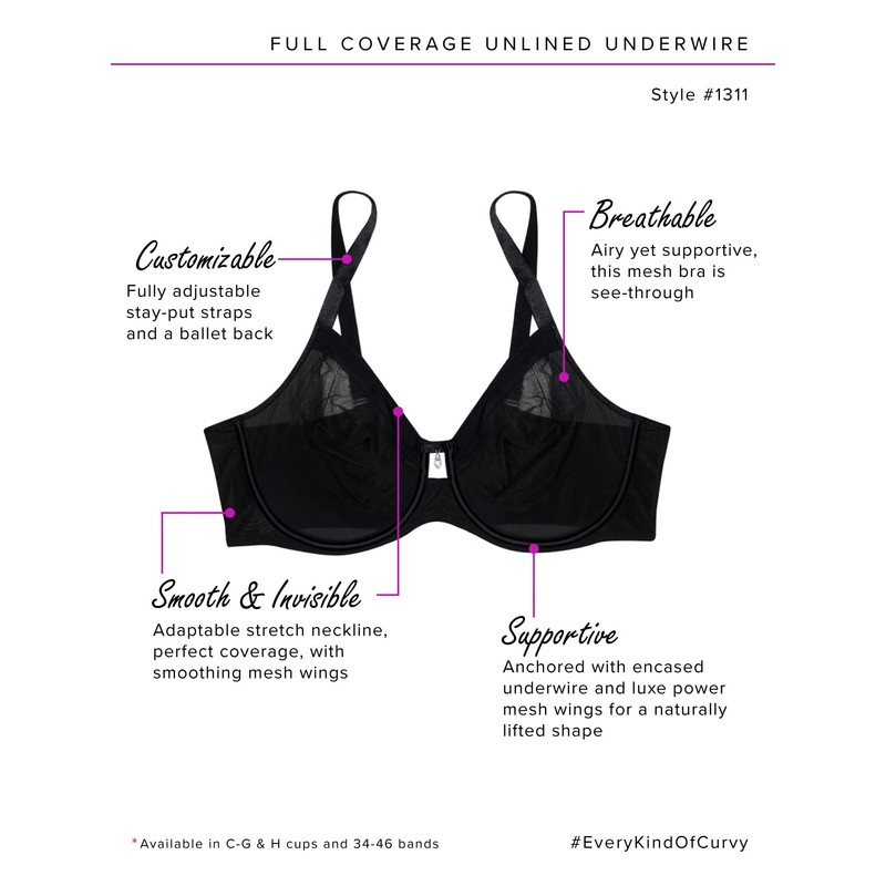 - Our sexiest bra to date, the Curvy Couture Women's Sheer Mesh Full Coverage Unlined Underwire Bra is an everyday bra with two layers of sheer mesh to support without adding padding.