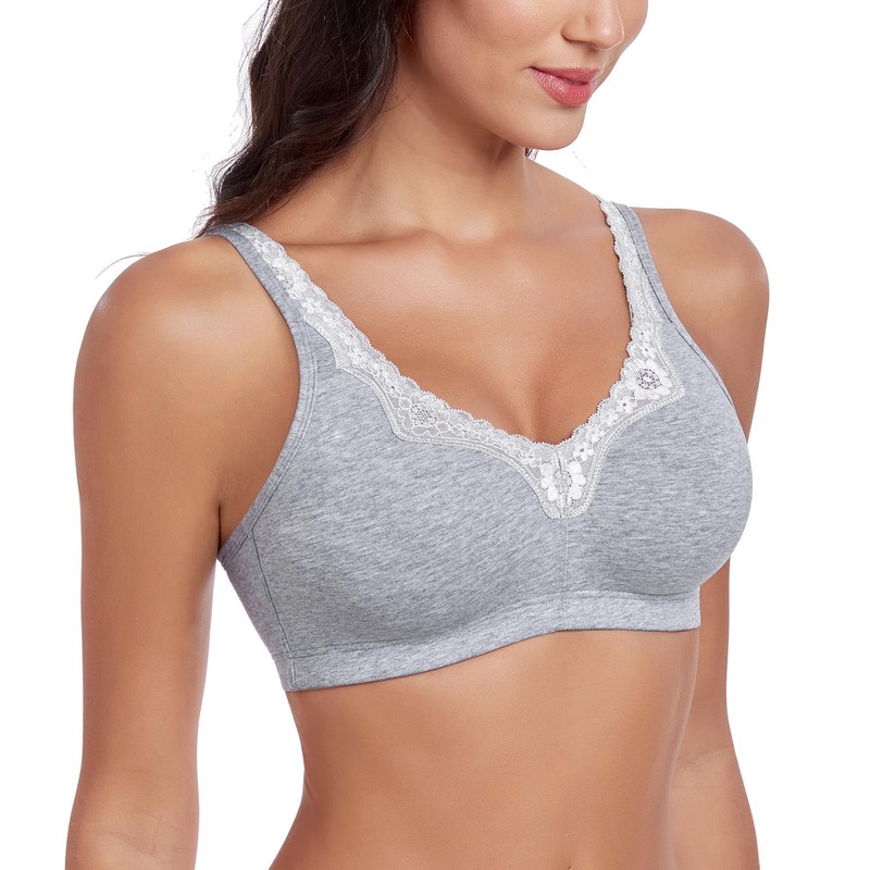 Curyon Women's Cotton Bra Non Padded Wirefree Lift Lace Floral Plus Size Comfort Everyday Bras Grey 42DD