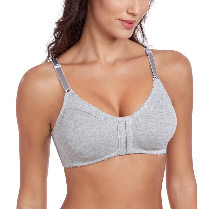 Curyon Women's Cotton Front Closure Bras Full Coverage Wirefree Everyday Bra Unpadded Unlined Bralette Grey 38C