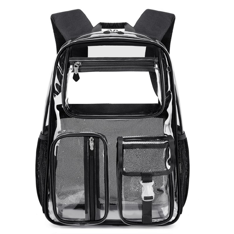 16 in Large Capacity See-Through Backpack Stylish design, sturdy and durable stitching construction suitable for men at work, concerts, stadiums, accompanying loved ones Children at amusement parks, science museums, aquariums etc. need to be screened through the Clear backpack We're not kidding around when it comes to durability. Thanks to reinforced stitching, the shoulder strap and top handle can handle heavier loads without even flinching, letting you carry your world without worry. What's more? The specially designed wider shoulder straps aren't just about looks—they're all about easing the stress on your shoulders and keeping you comfortable all day long! But that's not all. This see-through wonder ensures the security and accessibility of all your valuables and accessories, making you a security checkpoint pro! No more unnecessary delays—just quick, hassle-free passage every time. It's not just about functionality; it's a style statement. Whether you're heading to middle school, high school,university or a workplace that demands the best in security, this backpack has your back. It's practical, compliant, and effortlessly cool. And guess what? It's the perfect gift for anyone looking to add a spark of excitement to their Christmas, Halloween, or New Year! With its large main double zipper compartment for binders, laptops, and books, and additional pockets for your pencil box, markers, glasses, and side mesh pouches for water bottles or folding umbrellas, this backpack doesn't just carry your stuff; it flaunts it.