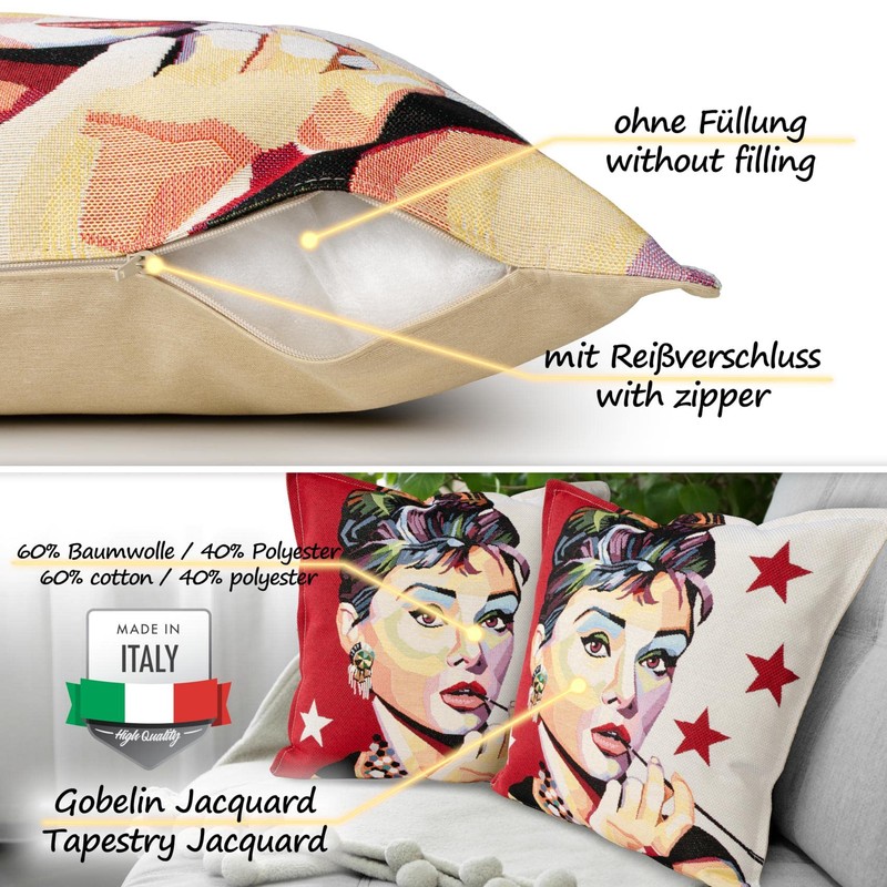 Cushion Cover Decorative Cushion Sofa Cushion Cover Tapestry Motif Audrey Hepburn 45 x 45 cm without Filling