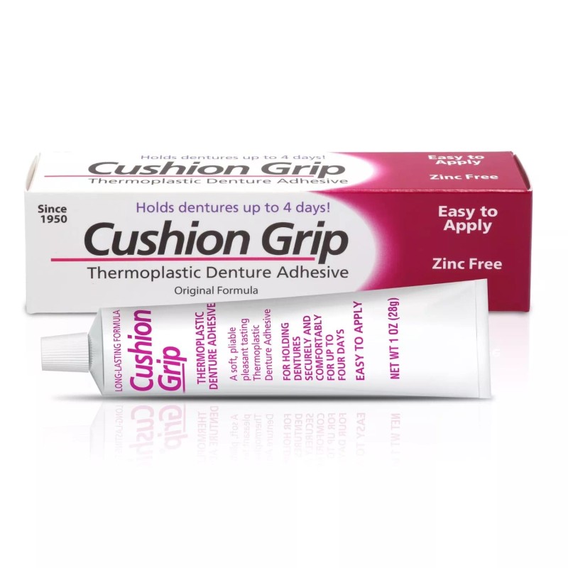 Cushion Grip Thermoplastic Denture Adhesive 1 Oz - 100% Waterproof & Zinc Free