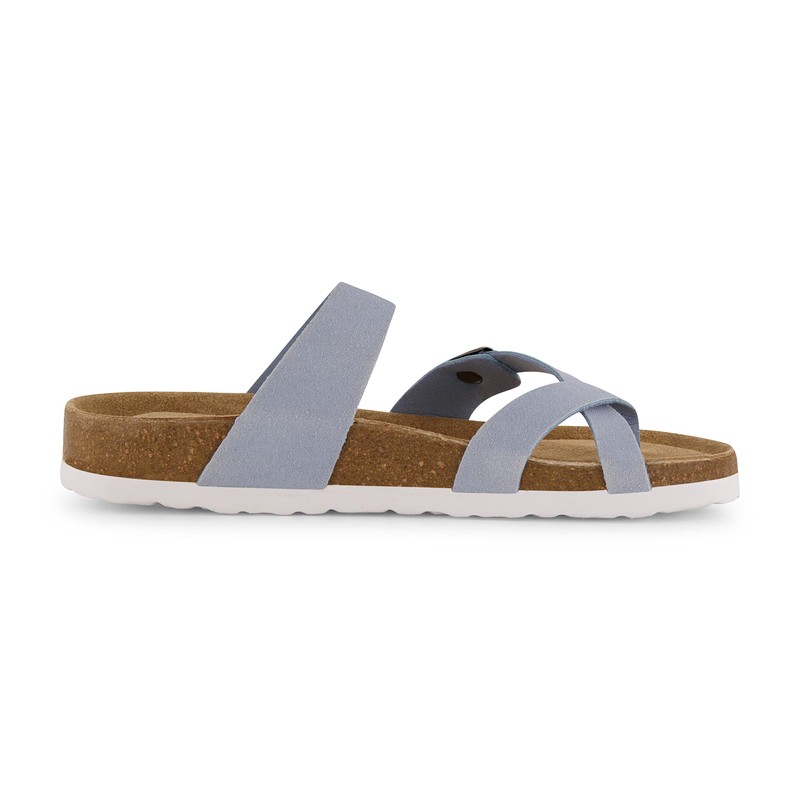Cushion Luna - Sandalia con plantilla de corcho para mujer con + comodidad, Gamuza vegana azul, 6 US
