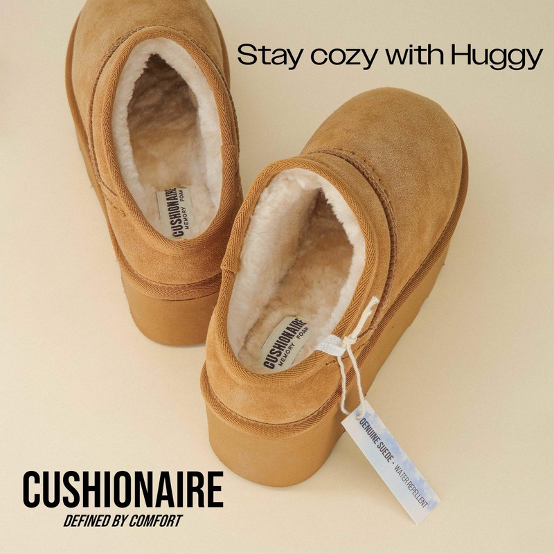 CUSHIONAIRE Women's Huggy Genuine Suede Cozy Mule Platform +Memory Foam, Wide Widths Available, Sand 10