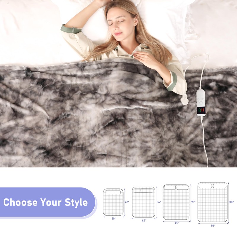 - 10 Heat Levels & 8-Hour Timer - With 10 adjustable heat settings, this electric throw blanket allows you to choose the ideal warmth — from gentle to full heat. The 1-8 H timer with automatic shut-off ensures safety and efficiency, giving you peace of mind if you fall asleep or forget to switch it off.