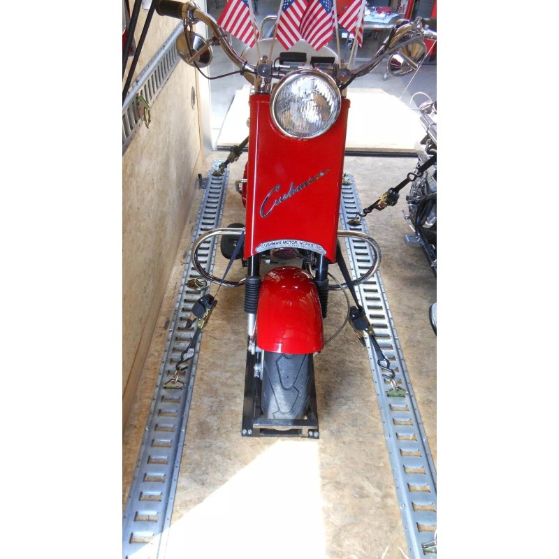 E-Z Transport Tie-Down Kits are an accessory that fastens permanently to your Cushman Eagle that aids and expedites safely tying down your scooter when transporting it. The front bracket straddles the frame in front of the fuel tank and the (2) rear brackets fasten at the front of the luggage rack eliminating the need for the nylon loops normally used for anchoring down your scooter for transport. They blend in unnoticeable but are there handily when needed for transport. All (3) brackets will go on without removing the tank or the luggage rack. This kit eliminates the need for the nylon loops normally used and makes hooking up and unhooking convenient and fast. They are made of mild steel, powder coated in gloss black and come with all the fasteners. This item is USA made in Indiana by Cushman enthusiast.