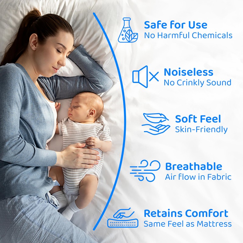 - Soft & Comfortable – Cotton blended top layers offers a softer feel keeping the mattress's comfort intact. This waterproof crib mattress protector won’t feel plasticky or crinkly. Once a sheet is over it, you won’t even feel it’s there.