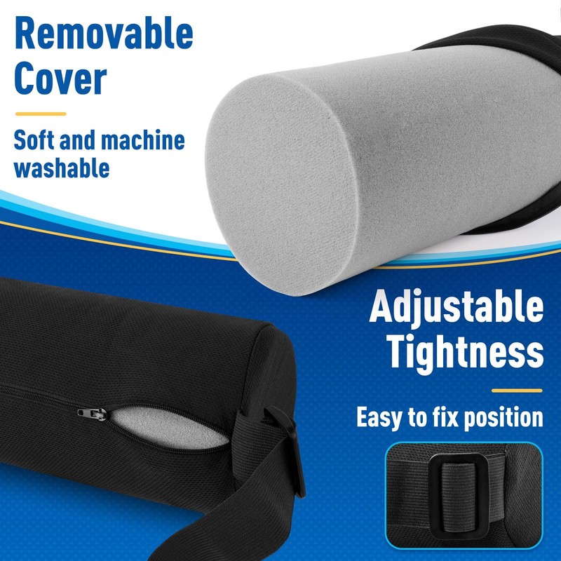 • [Multifunctional Use] The roll lumbar pillow can be attached to seats in cars, office chairs, and plane seats. You can adjust the elastic buckle to fit different chairs, seats or other situation. And the roll lumbar pillow can be used as lumbar pillow and neck pillow. The support lumbar pillow helps to improve posture and provides comfort when you sit, drive and work. Ideal for traveling, working, driving and home.