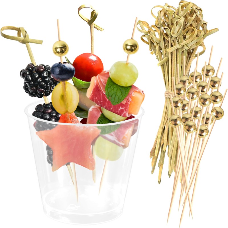 CUSINIUM [50 Cups + 200 Picks] 5.75oz Rounded Plastic Cups with Cocktail Picks