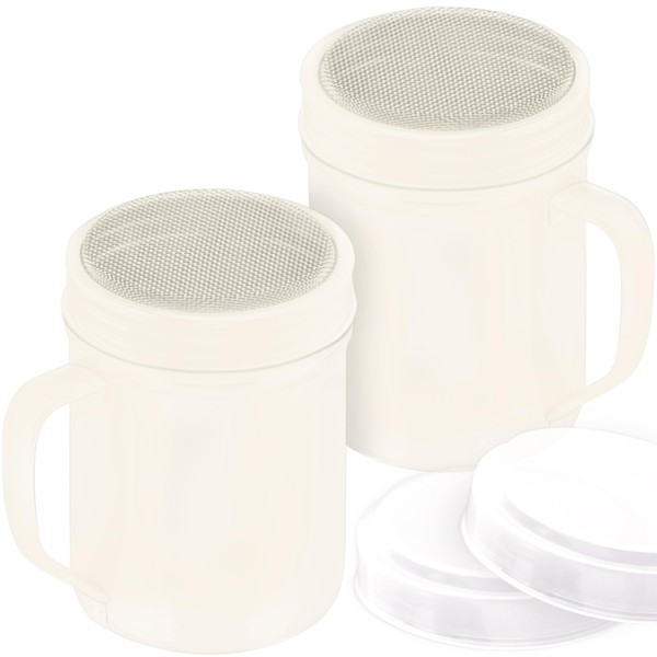 CUSINIUM 6 Oz Ivory Powder Sugar Shaker With Handle - Fine Mesh - With Plastic Cap - Pack of 2