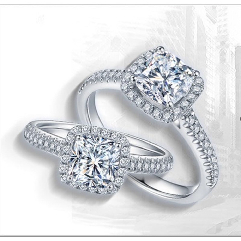 CUSIOALQQ Classic Promise Ring Cushion Cut 4ct Zircon Diamonds Stone 925 Ster...