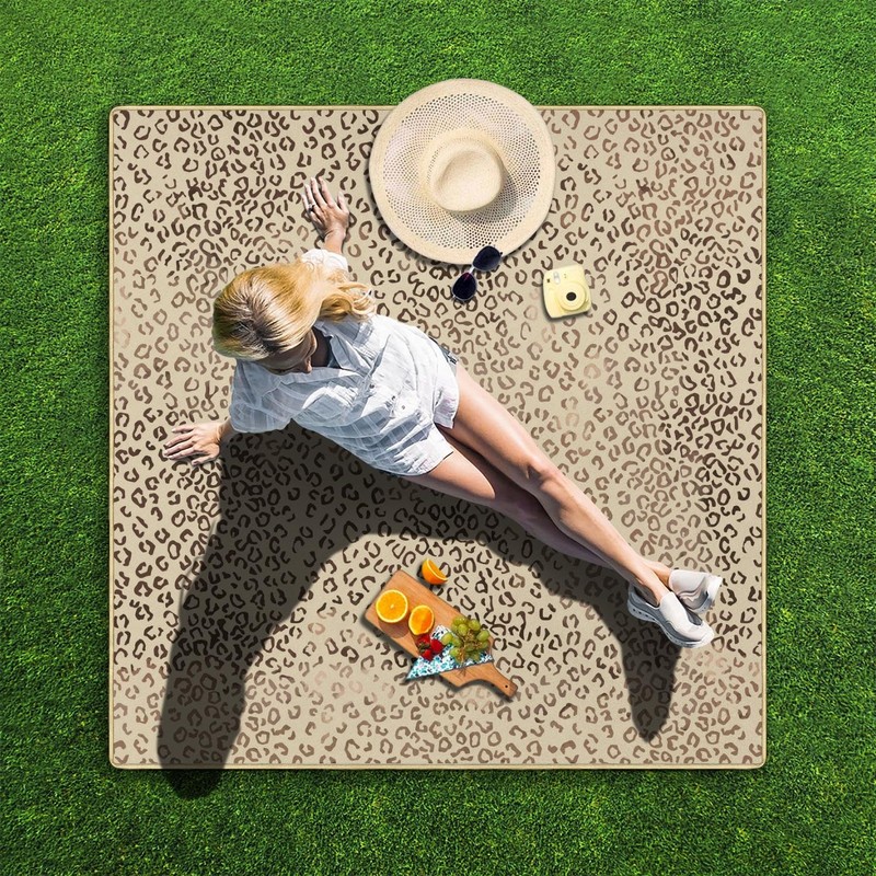 Cuslnox Picnic Blankets Waterproof Foldable Extra Large,80"x 80" Outdoor Beach Blanket Sandproof,3-Layer Lightweight Handy Mat Tote Picnic Camping Rugs for Outside Your Rv(Cheetah Leopard)
