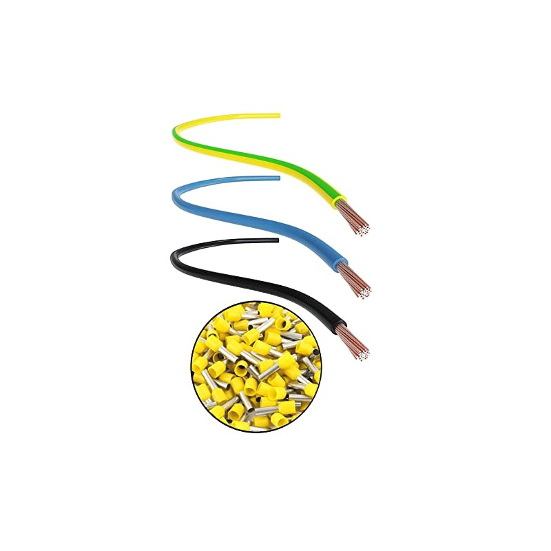 CusoTec Wiring Cable Set 6 mm² 5 m/2 m/2 m Single Core Cable Flexible Meter Space Wiring Bridges Black/Blue/Green-Yellow 40 Wire End Ferrules