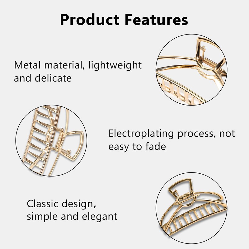 - Easy-to-Use Design: Featuring easy-grab handles, these claw clips are convenient for quick and effortless styling. They are ideal for securing a variety of hairstyles, from full updos to messy buns, ensuring your hair stays in place throughout the day.