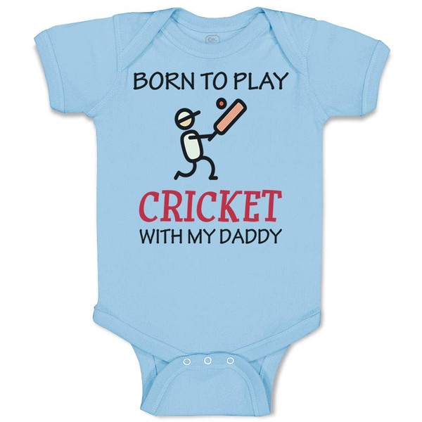 Custom Baby Bodysuit Born to Play Cricket with My Daddy Dad Father's Day Funny Cotton Boy & Girl Baby Clothes Light Blue Design Only 12 Months