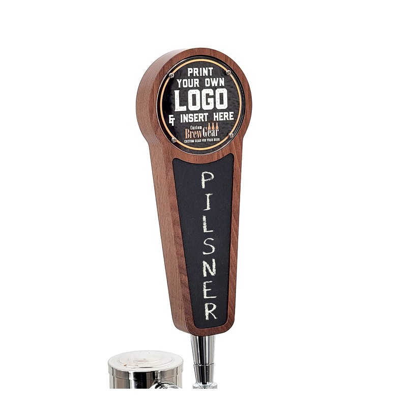 Custom Brew Gear Chalkboard Beer Tap Handle with Changeable Logo - Walnut - Keg Tap Handle