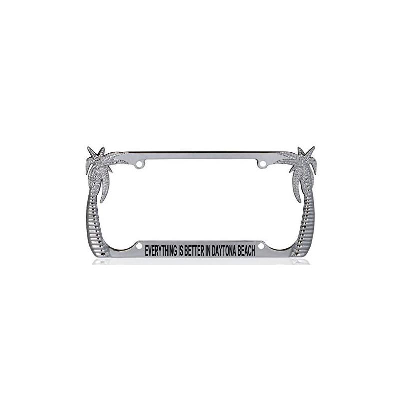 Custom Brother - Everything is Better in Daytona Beach Palm Tree Design Quality Chrome Metal Car SUV Truck License Plate Frame s93