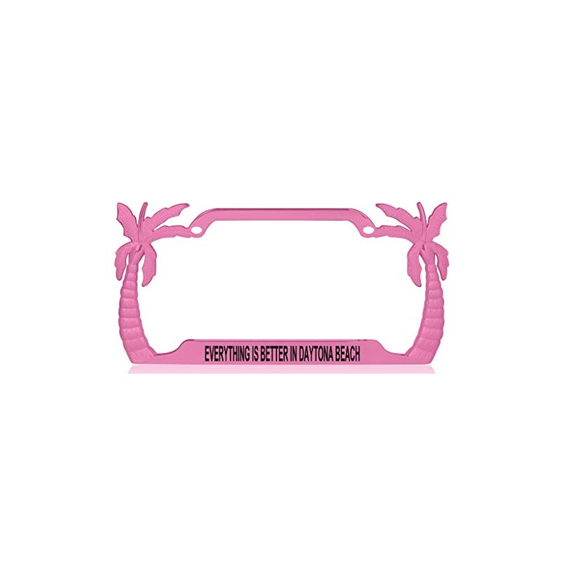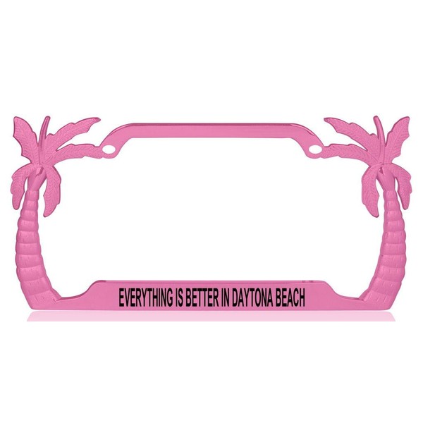 Custom Brother - Everything is Better in Daytona Beach Palm Tree Design Quality Pink Metal Car SUV Truck License Plate Frame c50