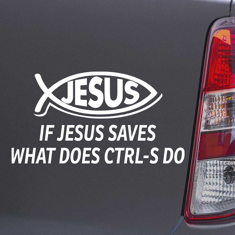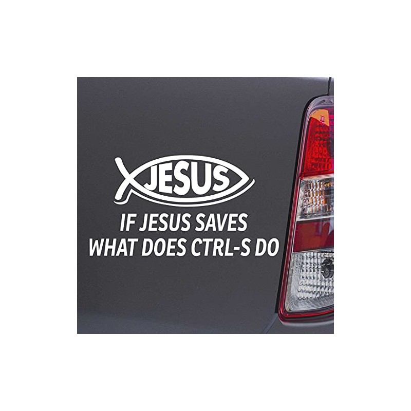 Custom Brother - IF Jesus Saves What Does CTRL S DO Christian Jesus Fish White Color Car Laptop Wall Bumper Decal Sticker, DesW62