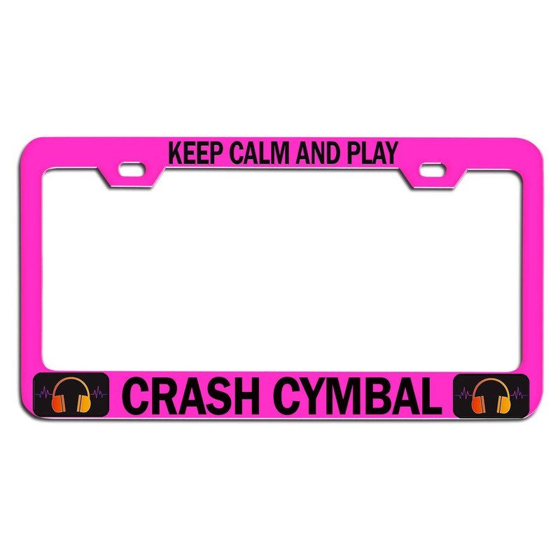 Custom Brother - Keep Calm and Play Crash CYMBAL Pink Steel Auto SUV License Plate Frame License Tag Holder, N48