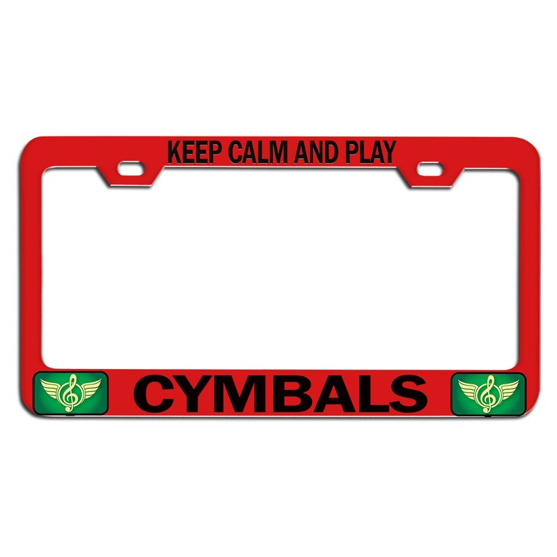 Custom Brother - Keep Calm and Play Cymbals Red Steel Auto SUV License Plate Frame License Tag Holder, O3