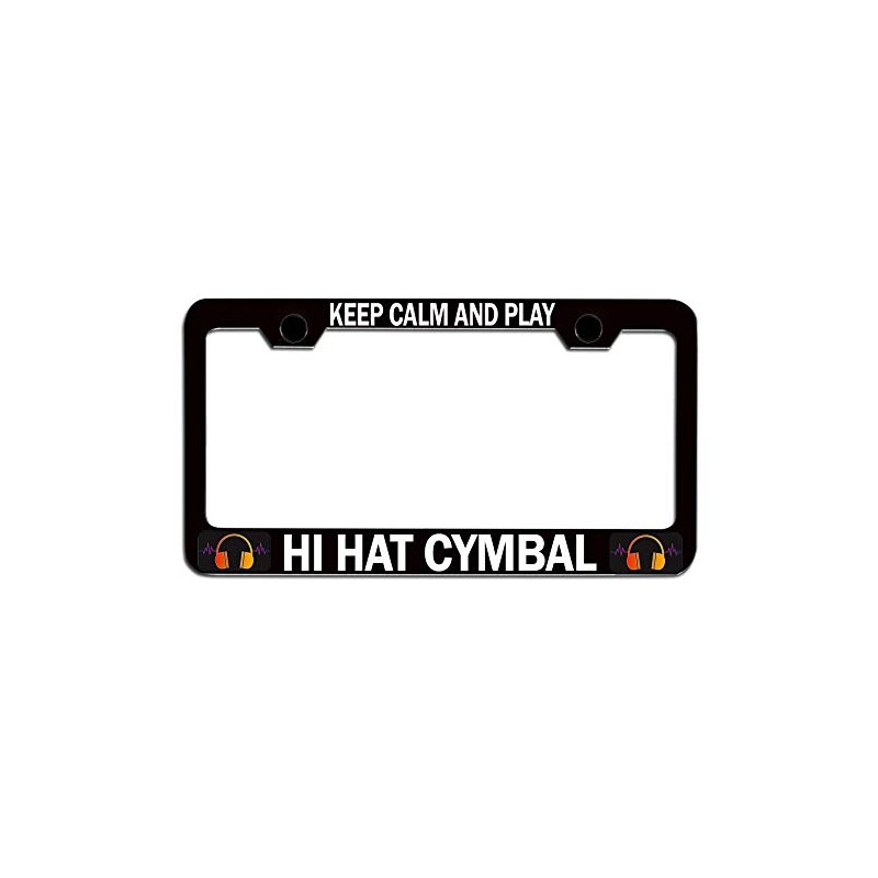Custom Brother - Keep Calm and Play HI HAT CYMBAL Black Steel Auto SUV License Plate Frame License Tag Holder, T53