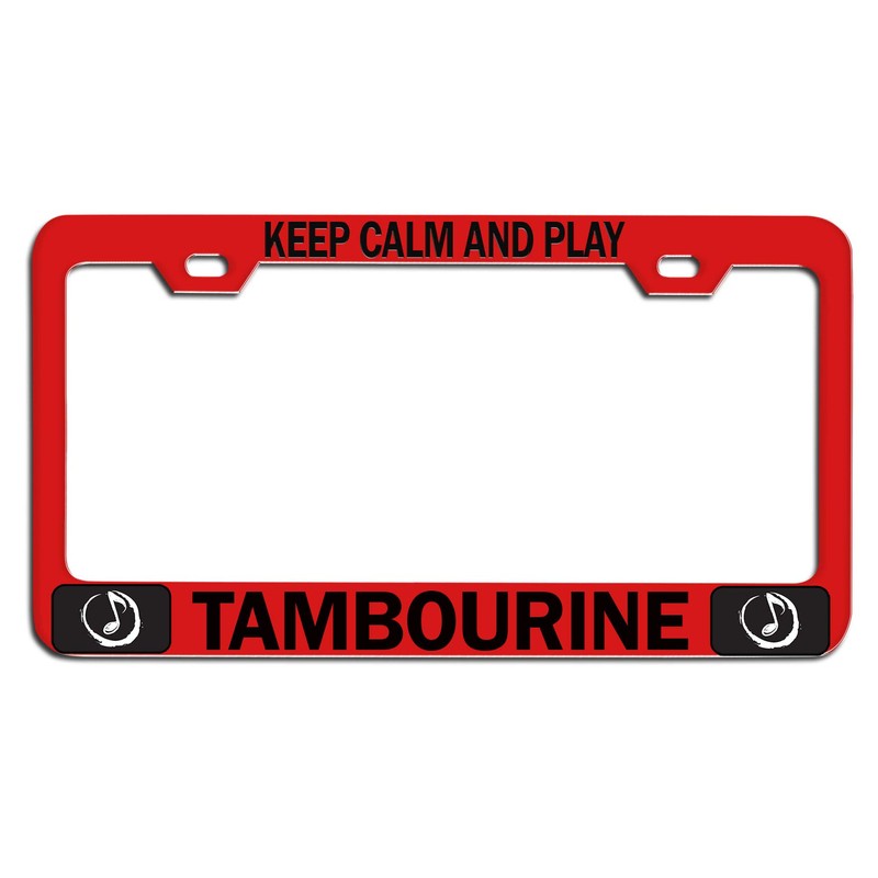 Custom Brother - Keep Calm and Play Tambourine Red Steel Auto SUV License Plate Frame License Tag Holder, E10