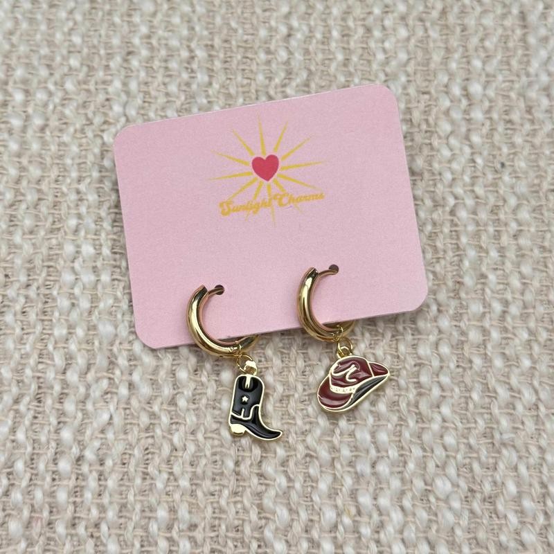 Custom Charm Earrings - 18k Gold Plated Earring Hoops - 2 Styles - Gold or Cubic Zirconia:_Cubic Zirconia