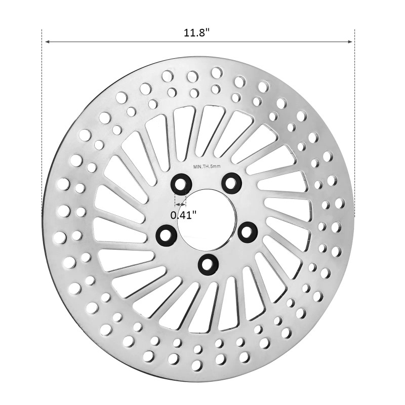 Rotor Size: 11.8'' Outer Diameter: 11.8'' / 300 mm Inner Diameter: 2.2'' / 56.4 mm Thickness: 4 mm Hole Quantity: 5