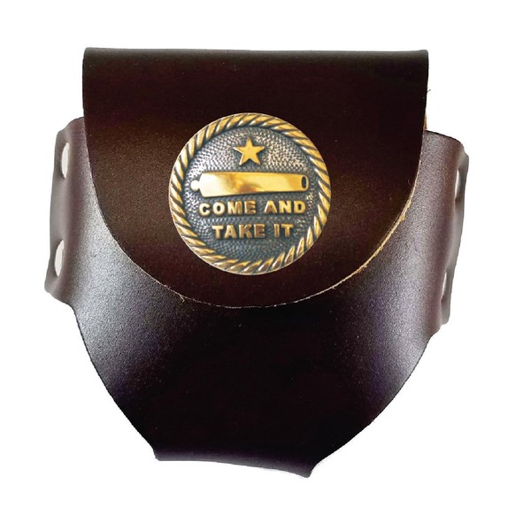 - A Come and Take It Concho mounted on a Beautiful Genuine Leather Snuff Can holder