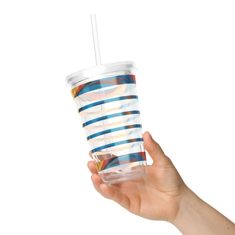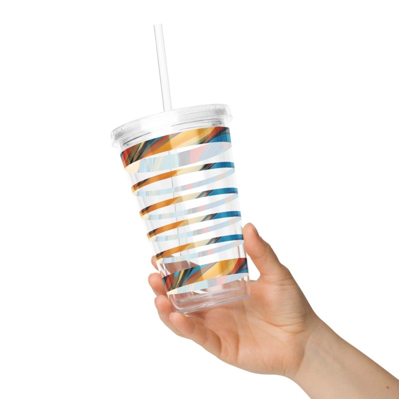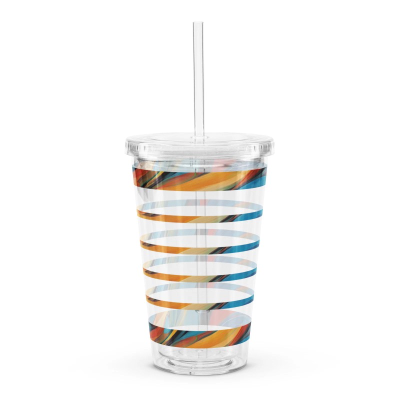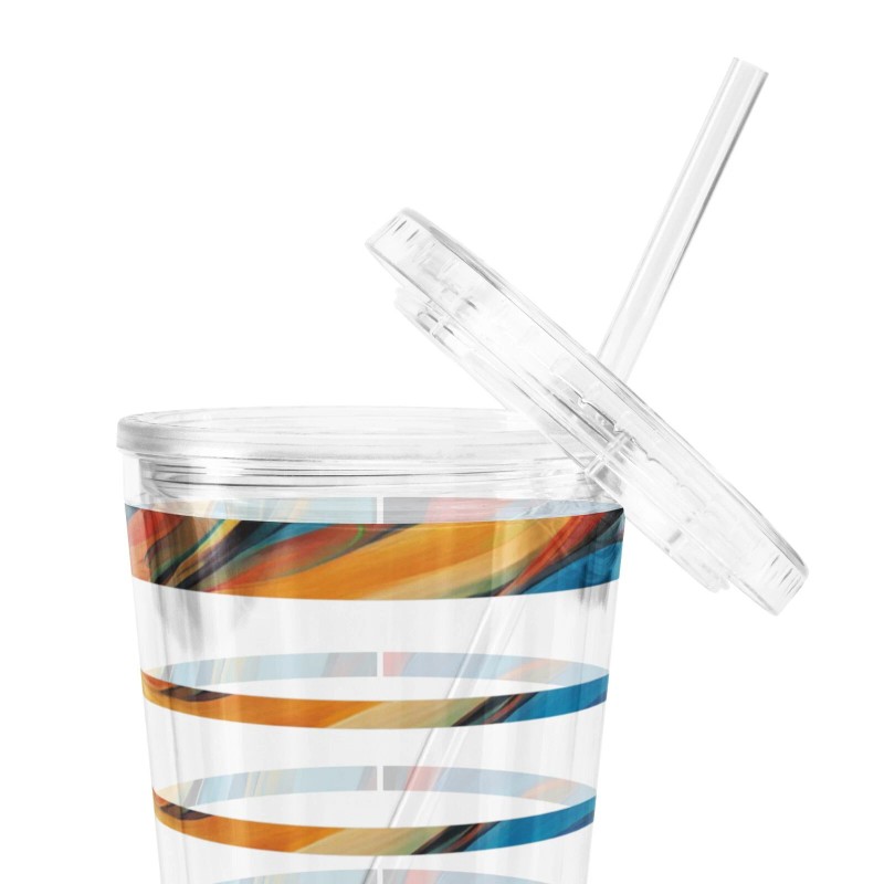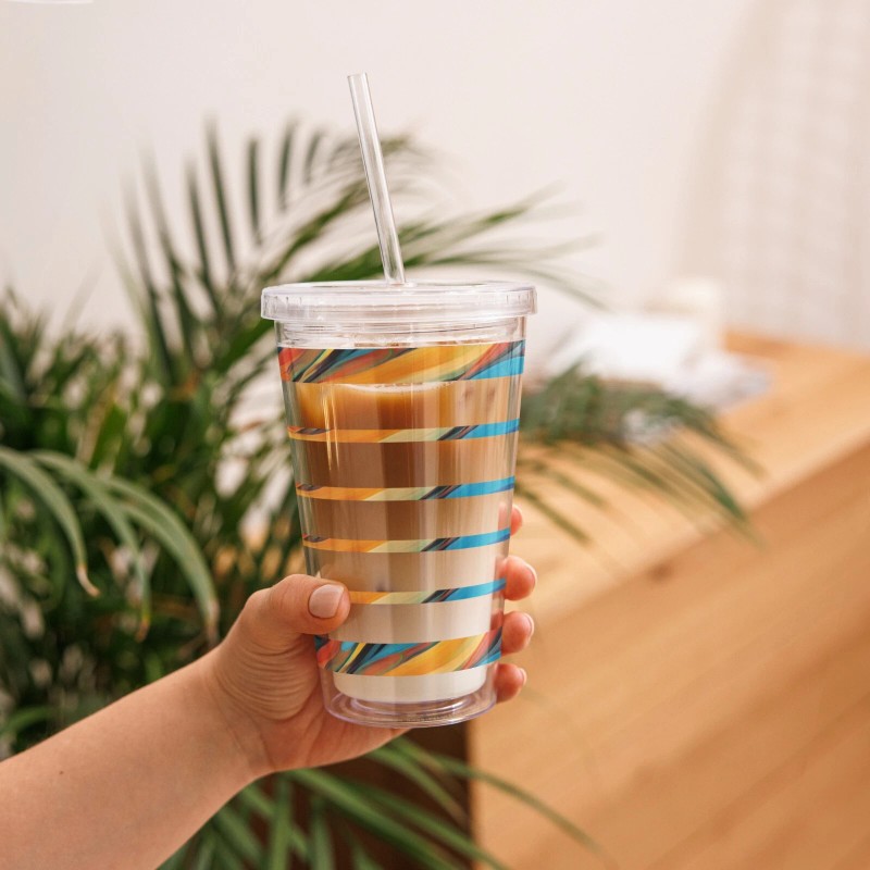 Custom Comforts1 New! 16 oz Clear Acrylic Tumbler Retro Stripes Double Walled Screw Lid and Straw