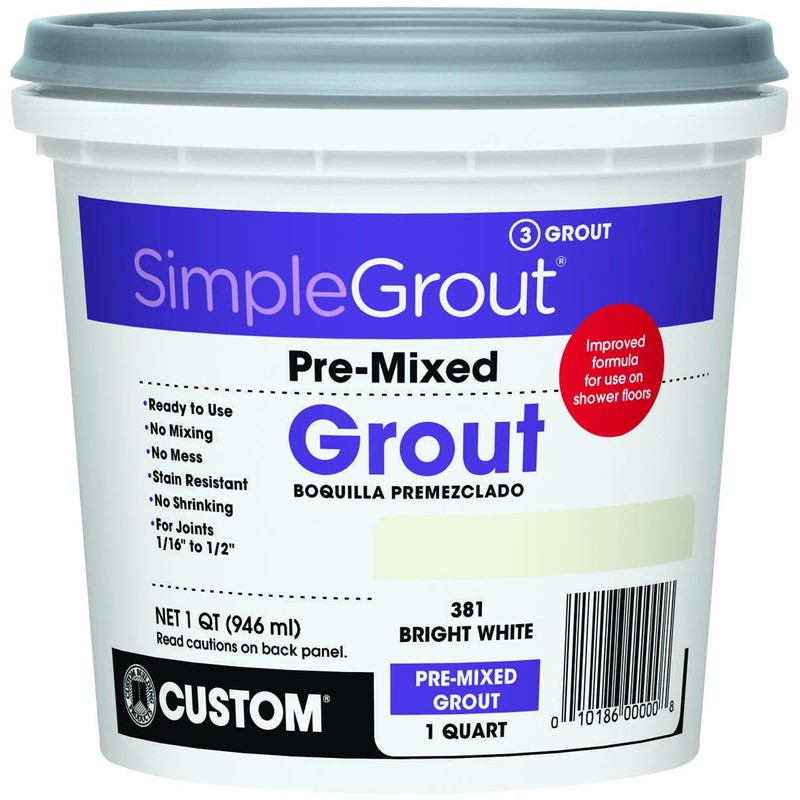 Custom simple premium grout, premixed and ready to spread. For grout joints from 1/16-Inch wide to 1/2-Inch wide. Stain, shrink and crack resistant. Excellent for grout restoration, simply apply over existing grout. Excellent water resistance, use on shower walls and countertops. Installs like conventional sanded grouts. Average coverage: 4.25-Inch wall tile 0.25-Inch thick with a 1/16-Inch grout joint, 34-Square-Feet per quart. Average coverage: 12-by-12-Inch tile 3/8-Inch thick with a 1/4-Inch grout joint 29-Square-Feet per quart. Color: 381 bright white