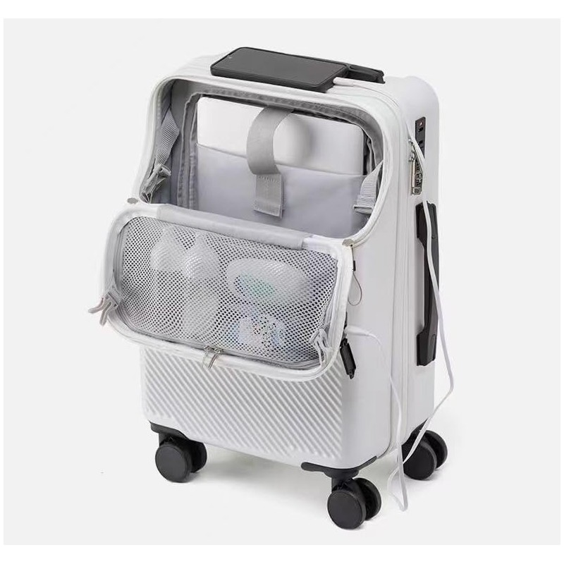 - Convenient USB Charging Port: Featuring a built-in USB port, you can conveniently charge your devices on the go by simply connecting a power bank inside the suitcase.