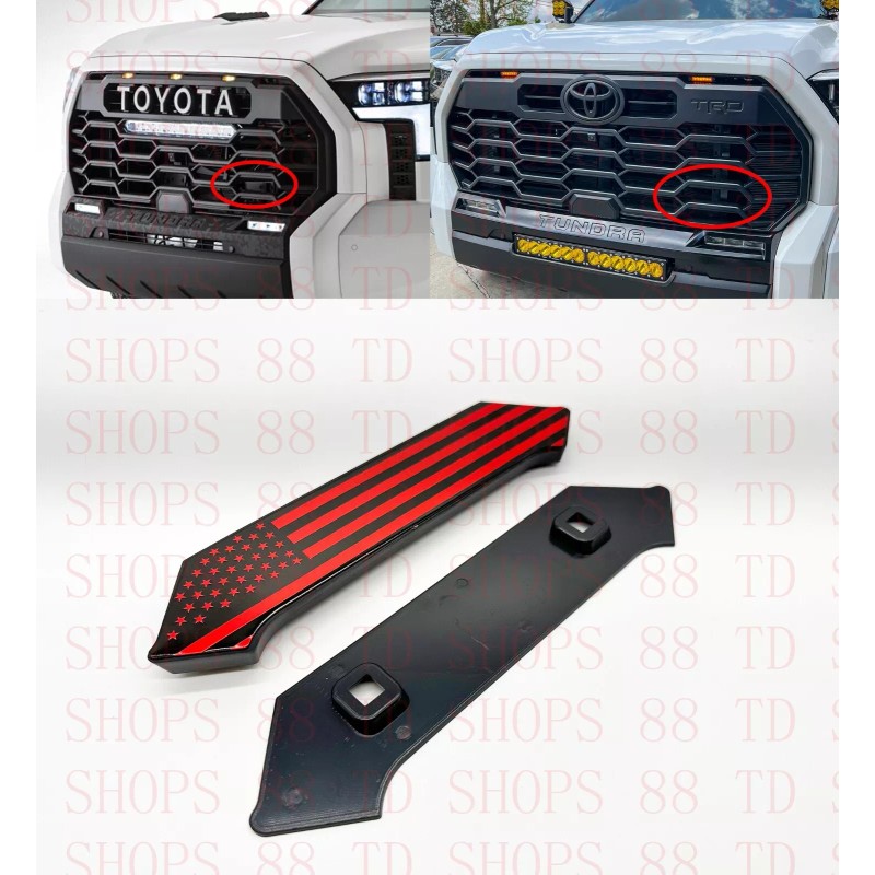 what is include: One set Flag emblem fit TRD and TRD PRO front grill only. please check first picture. 【HIGH QUALITY material】- Our Emblem made from high-quality material. The delicate finish is styling and durable, UV stable, never fade in all extreme conditions, BUILT TO LAST! 【PERFECT FIT】- Flag emblem fits for Toyota Tundra 2022 and up TRD AND TRD PRO front grille . Make your pickup look awesome! 【EASY INSTALLATION】- Attached with strong 3M adhesive backing, individual letters strongly adhere into the stamped tailgate logo, only takes minutes to install on your own, no technical skills required. 【NICE LOOK】- Install Our Emblem to make your Tundra be an eye-popping. Installation: Step 1: Use rubbing alcohol to clean the Tundra lettering on the space. Ensure all dust, dirt, and wax are removed from the debossed area. Step 2: Facing the Tundra, turn it flat face down and remove the white paper carrier protecting the lettering adhesive. The letter will stay in place on the clear carrier. Step 3: Pull off the clear installation carrier and now Your Tundra look AWESOME! Note: These inserts are car wash safe, but make sure to clean the paint before installation and they won't come off. |