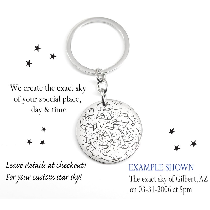 Custom Engraved Star Map Keychain with Date, Location and Time, Valentines day gift for Wife Husband, girlfriend, Anniversary keepsake, Birthday gift for loved one