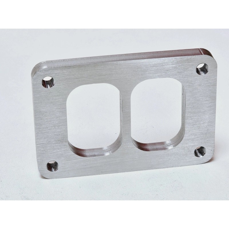 All our products are CNC milled using the latest CAD/CAM programs which are built in house on 3 and 4 axis high precision machinery. We offer the billet flanges in custom thickness and even custom application transitions for easier fab work or building your own DIY kits. We guarantee our products and service if you are not satisfied return the product and receive the purchase price refund. We machine out adapters and flanges with the industry standards by using USA certified materials to resist warping and provides excellent weldabilty. The turbo adapters' ports are all ballmilled to improve flow smoothly from one port shape to the other reducing resistance and turbulence. We also even go the extra distance to sand down the machine waves using a hatch cross pattern to improve sealing.