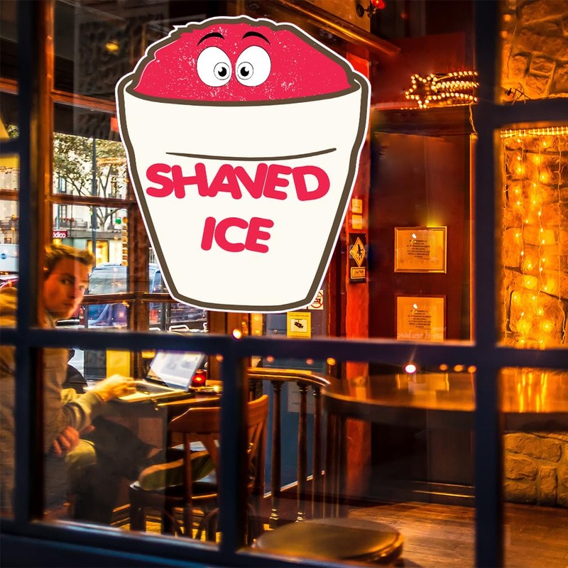 Give to your Patriotic Shaved Ice Red and White and Strawberry Coconut Shaved Ice food truck/restaurant style and personality with our cool Cherry Vanilla Shaved Ice Treats and Red Fruit and Cream Shaved Ice concession stand sign. Peel & stick as many times as you want. Our food truck sign is the most economical form of advertising and can be displayed on most hard surfaces such as walls, doors, poles, windows, floor, windows, truck, fridge, luggage, and more!