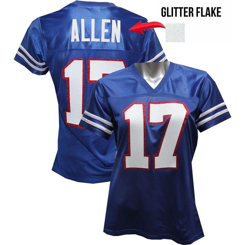 Custom Glitterflake Josh Allen Womens Blue Jersey Size 3XL XXXL