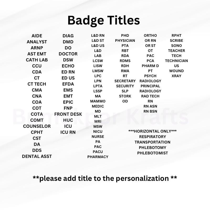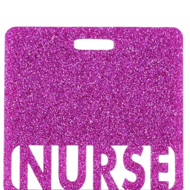 Custom Healthcare and Teacher Badge - Personalized Identification for Medical Professionals - Colour: Light pink glitter, Size: Horizontal, Title: RN